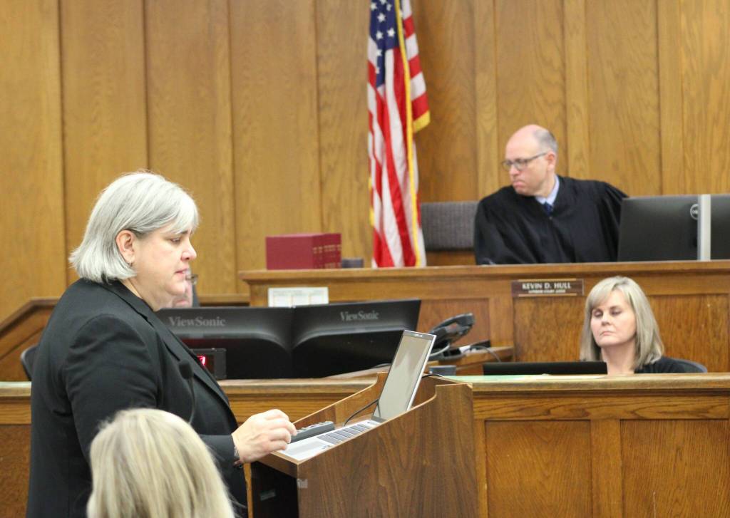 Prosecuting attorney Kelly Montgomery works through her opening statement before the jury in Kitsap County Superior Court.