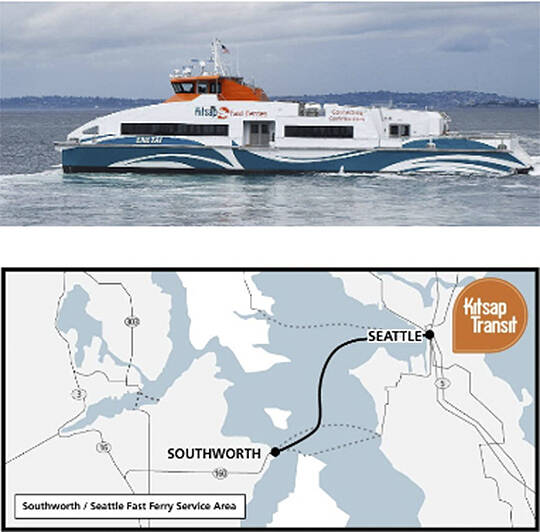 The Southworth-to-downtown Seattle fast ferry operates weekdays. It makes 26 minutes crossings four times each morning and afternoon.