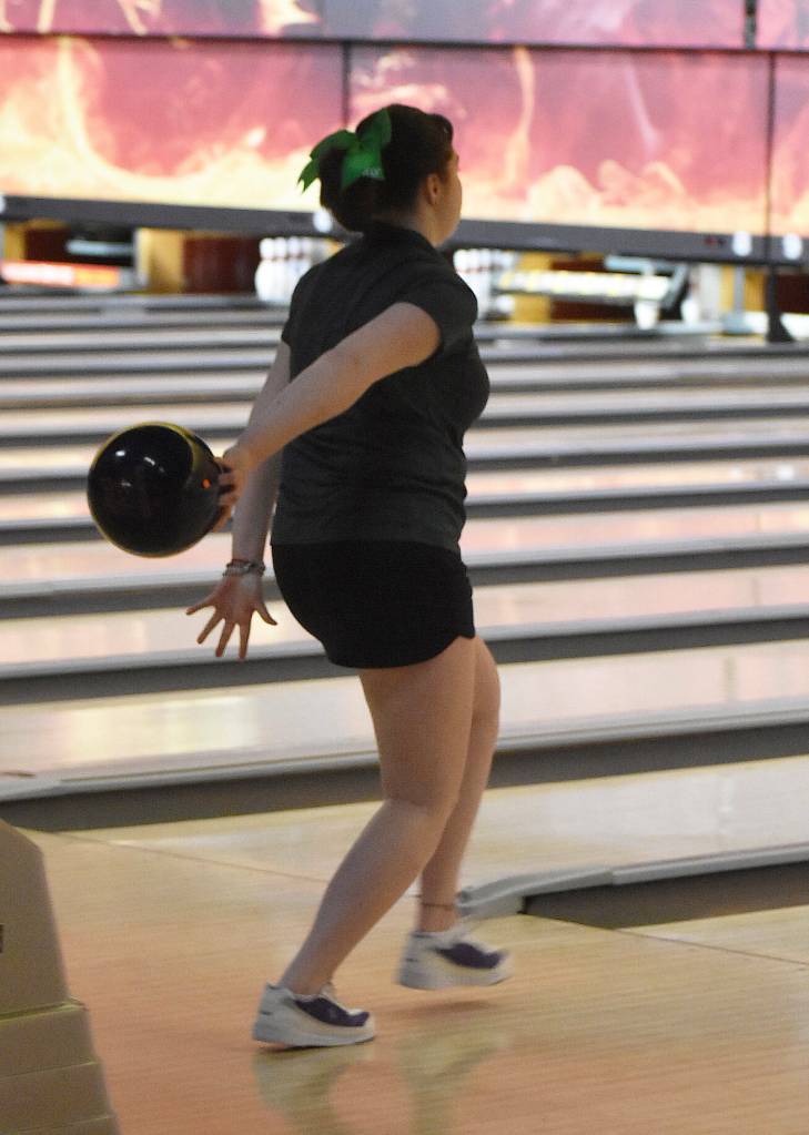 Salina Stroup finished with the highest score, knocking down 533 pins. Neveah Glance finished third with 514 pins, Tatum Robbins finished 31st with 411, Ray Ventura finished 37th with 401 and Allie Corn finished 57th with 345 pins.