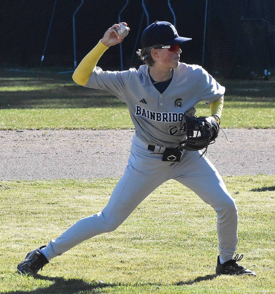 Bainbridge scored three runs in the top of the first inning. Will Rohrbacher smashed a ball to the right-centerfield wall to score AJ Larsen and Duncan Bos. Rohrbacher scored a few pitches later when Spanaway Lake’s shortstop threw the ball over the first baseman’s head, allowing Talan Williams to reach first base.