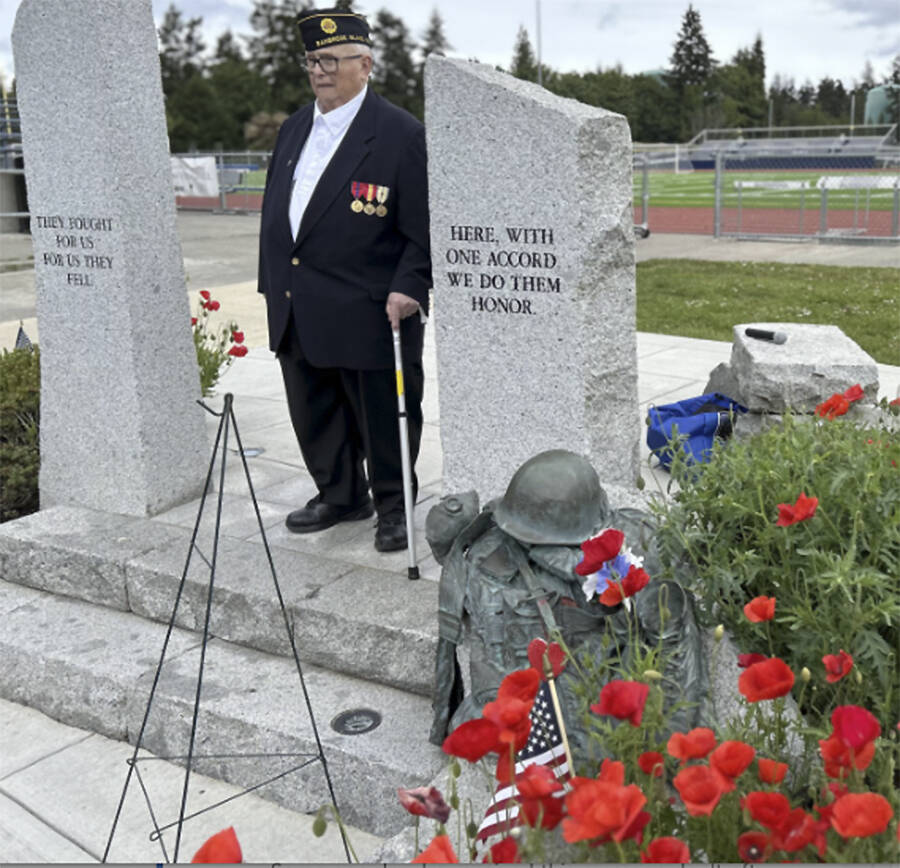 With a break in the gloomy weather May 27 a large Memorial Day crowd paid tribute to the 24 Bainbridge Island soldiers who lost their lives in battle.