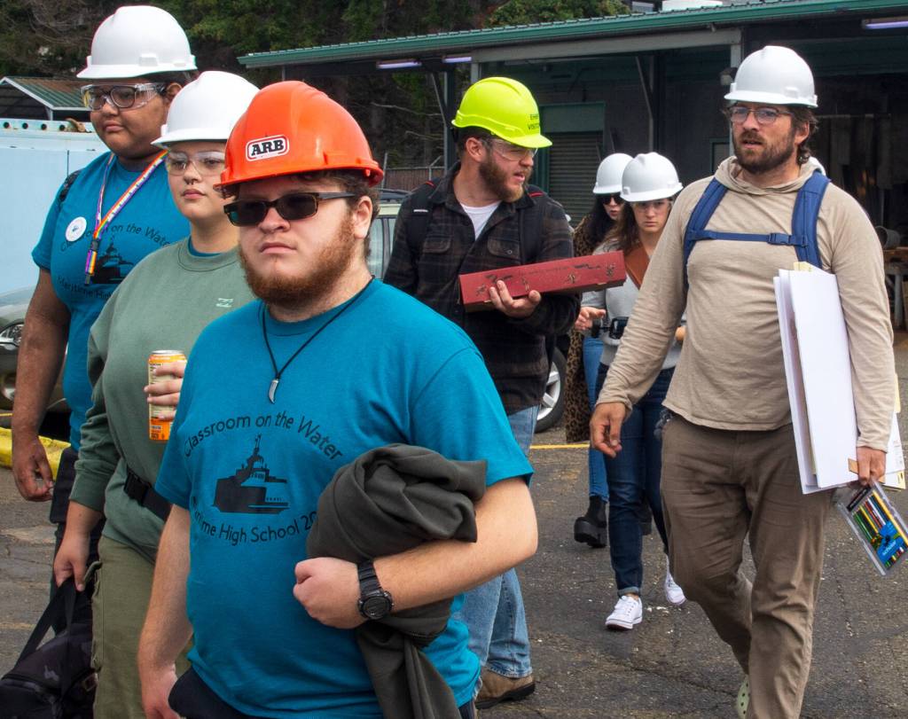 Students head to board a ferry for a day of class and hands-on training on the water.