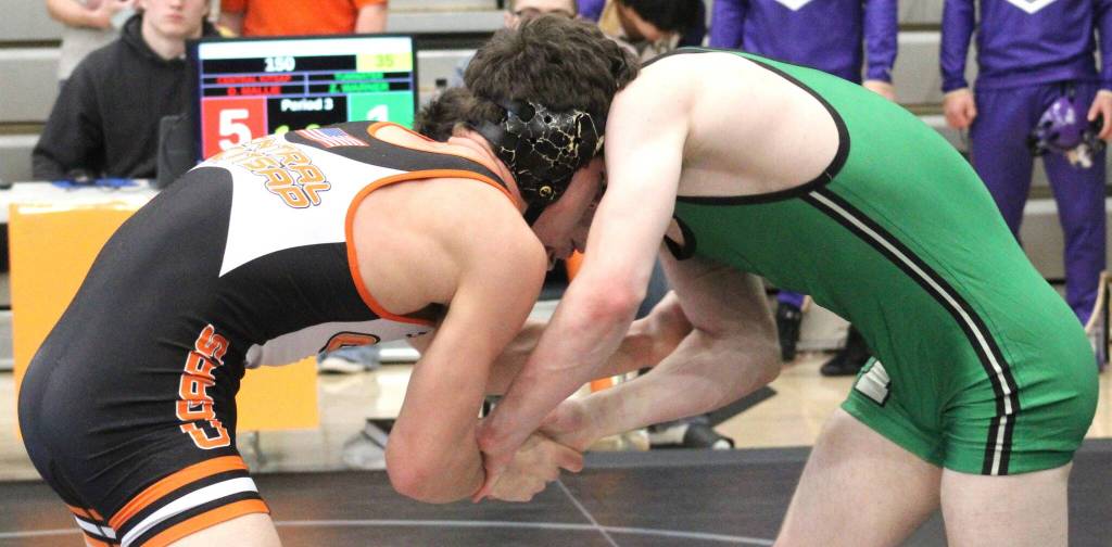 Knight freshman Magnus Michaelson placed first in the 150-pound weight class, defeating O’Dea senior Nathaniel Badley by way of fall and maintaining his perfect record of 4-0. Tristyn Nelson of CK beat Jackson Brown of Olympic for third in the weight class by way of a 12-7 decision.