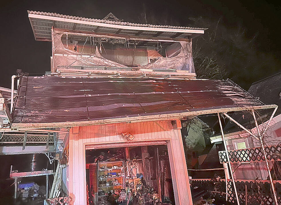 Firefighters from NKF&R, along with the Poulsbo and Bainbridge Island fire departments, were called to the Geneva Street address at about 1:07 a.m. after a Suquamish police officer spotted flames coming from the ADU over a home’s garage, per the release.