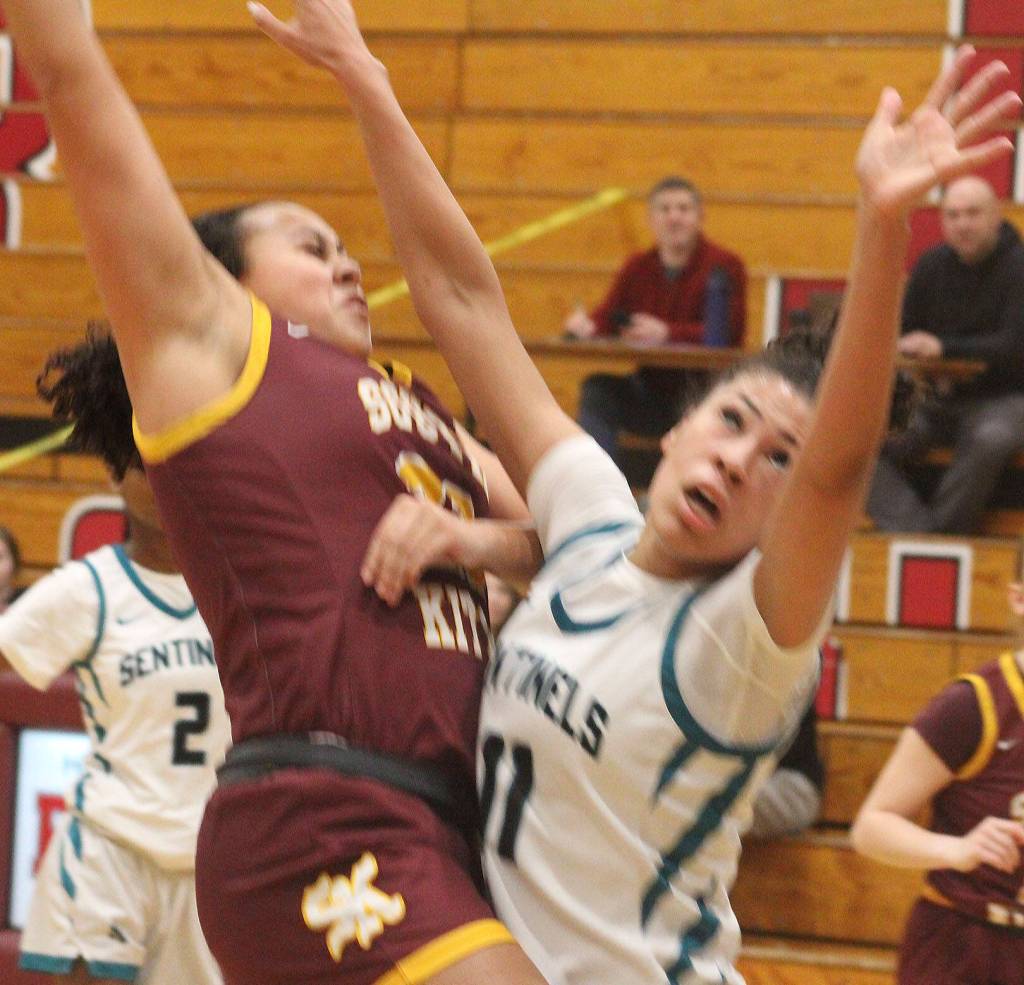 The South Kitsap girls basketball team struggled to combat Spanaway Lake’s full-court press throughout the game in a 47-17 loss at Bethel High School Feb. 7, ending the Wolves season.