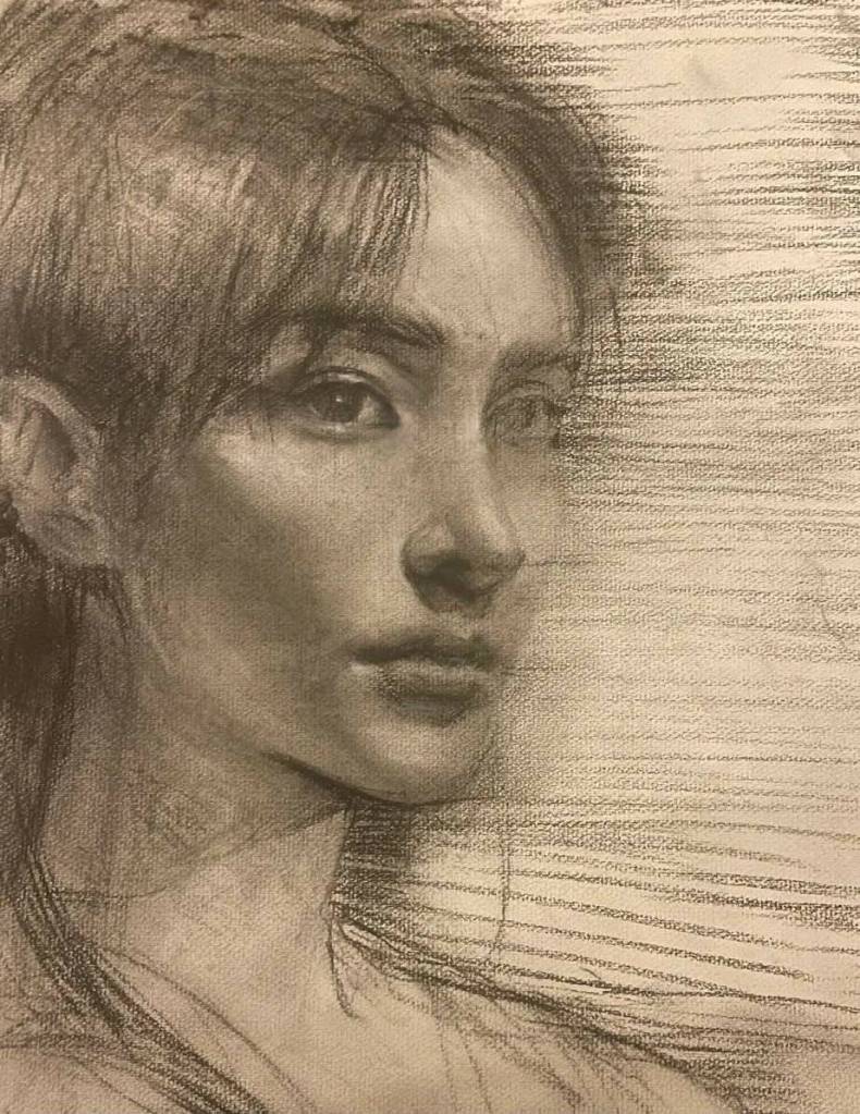 Cruz’s piece, “Gentle Smile,” was recognized for its striking depiction of human expression, the judges said. She created the piece using graphite, charcoal and smudging techniques, working primarily with her index finger to blend details.