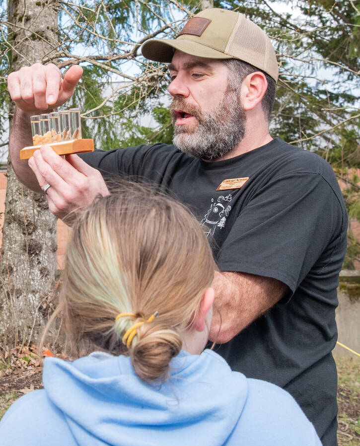 GPC community engagement manager Gabriel Newton teaches students about the salmonid’s lifecycle.