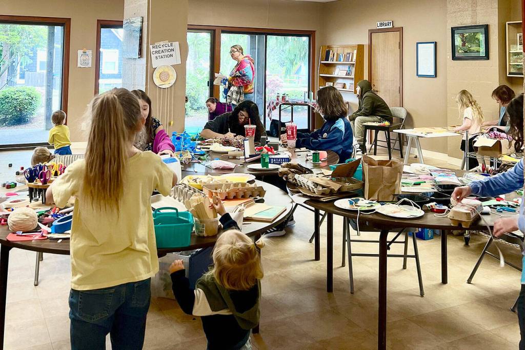 Saturday’s event featured both indoor and outdoor stations. Outside, children explored fire trucks, police vehicles and visited booths from community partners, including the Kitsap Regional Library, which brought its full preschool catalog. A large composting exhibit showed families various sustainable practices for handling waste.
