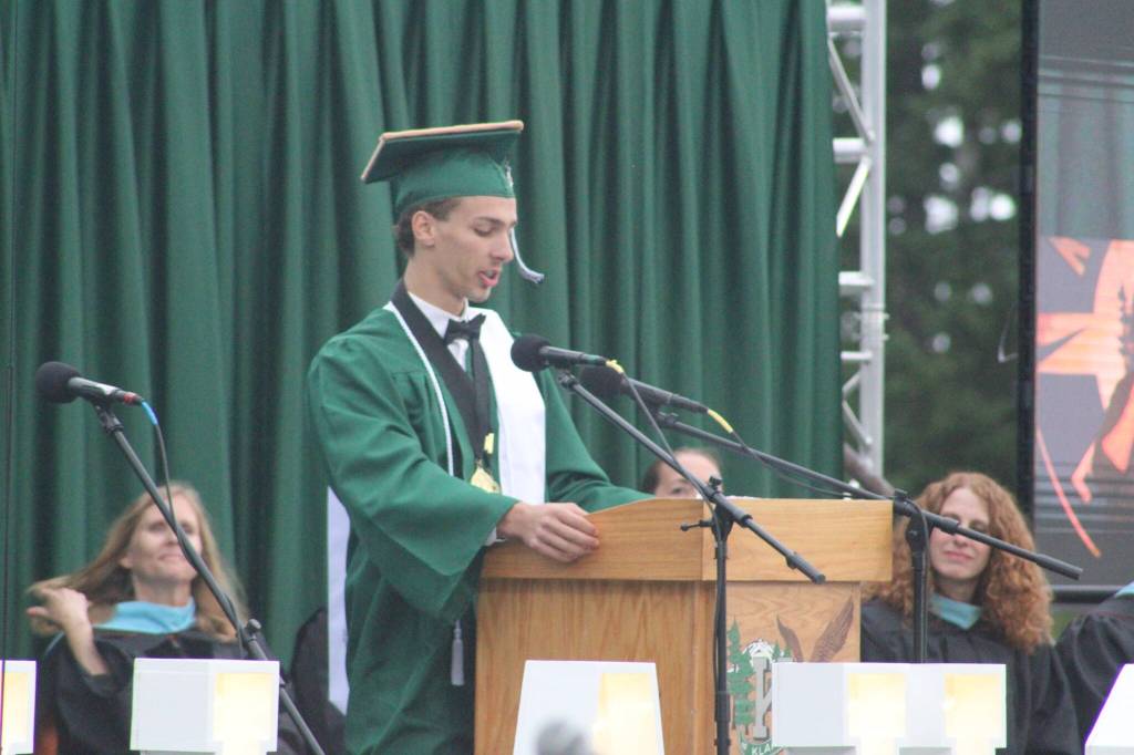 Klahowya Salutatorian Tyler Larson gives his speech at the graduation ceremony June 13.