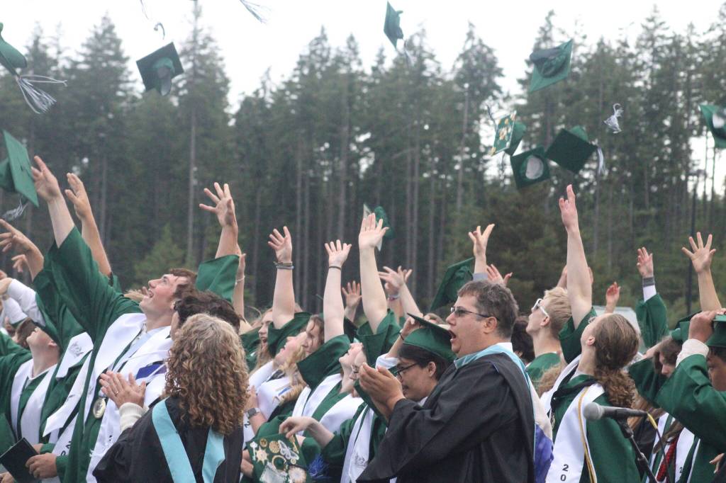 The Klahowya class of 2025 throws their caps in the air at the end of the graduation ceremony June 13 at Silverdale Stadium.