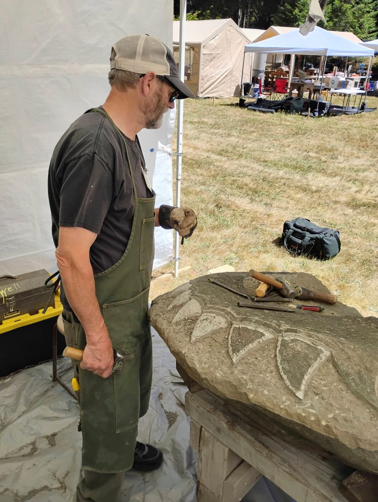 37 years ago, eight stone sculptors got together in Washington to share their knowledge, work on their stone carvings and “talk shop” about what they do. Every year since that July day in 1988, stone carvers have gathered to build on, grow and share that community. This year, more than 100 members of the Northwest Stone Sculptors Association, as well as several guest artists, are gathering at Pilgrim Firs Camp in Port Orchard in record numbers this week to create, share, and grow again for the annual Washington Stone Carving Symposium.