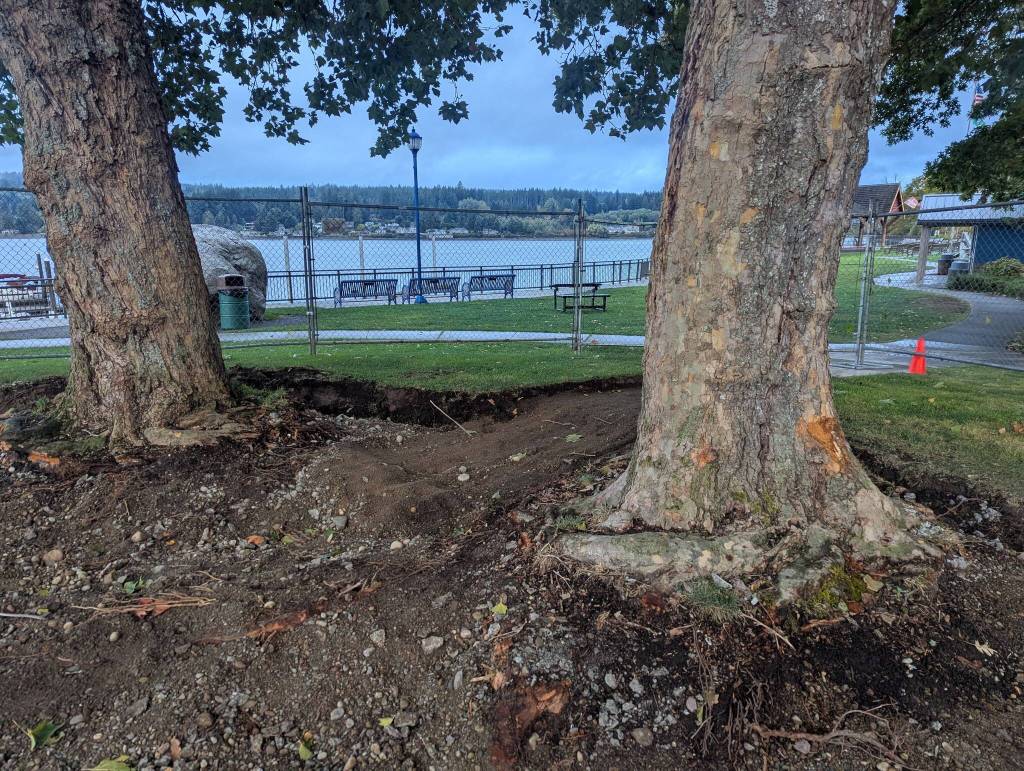 The city of Poulsbo was notified last week that the southernmost London Plane in the renovation area of Muriel Iverson Williams Waterfront Park unexpectedly fell Sept. 30, which prompted the removal of two more trees in the park.