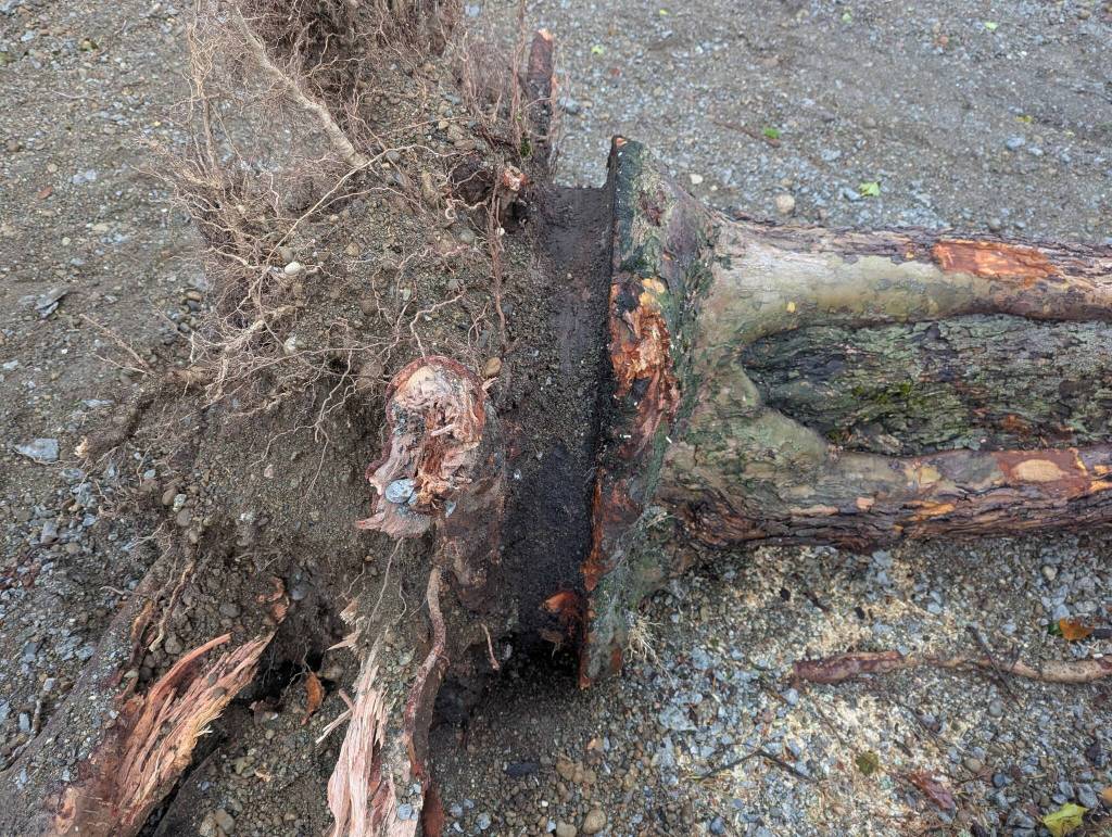 Upon inspection of the fallen tree, the city arborist determined it was significantly root-bound, having grown into and around the aged concrete pad over the past 40-plus years. London Planes are a non-native species to the Pacific Northwest that have been a popular tree for cities to plant globally for their ability to thrive in harsh urban environments, withstand soil compaction, as well as air pollution, per PP&R.