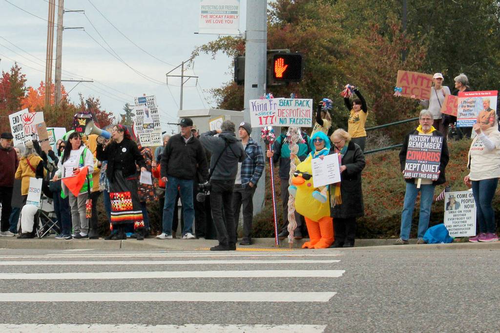 2,300 demonstrators in South Kitsap lined all four streets at the Bethel and Lund intersection Oct. 18 as part of the worldwide “No Kings 2” protest against the Trump administration.