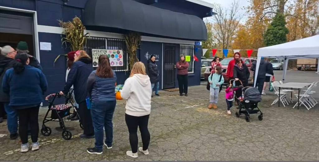 Operation Kitsap Cares, a community-led Thanksgiving festival created in response to the recent federal government shutdown, drew a large turnout Nov. 22 as volunteers distributed more than 100 holiday meal baskets and served hot food, drinks and kids’ activities at Port Orchard’s RoqN Pilates Studio.