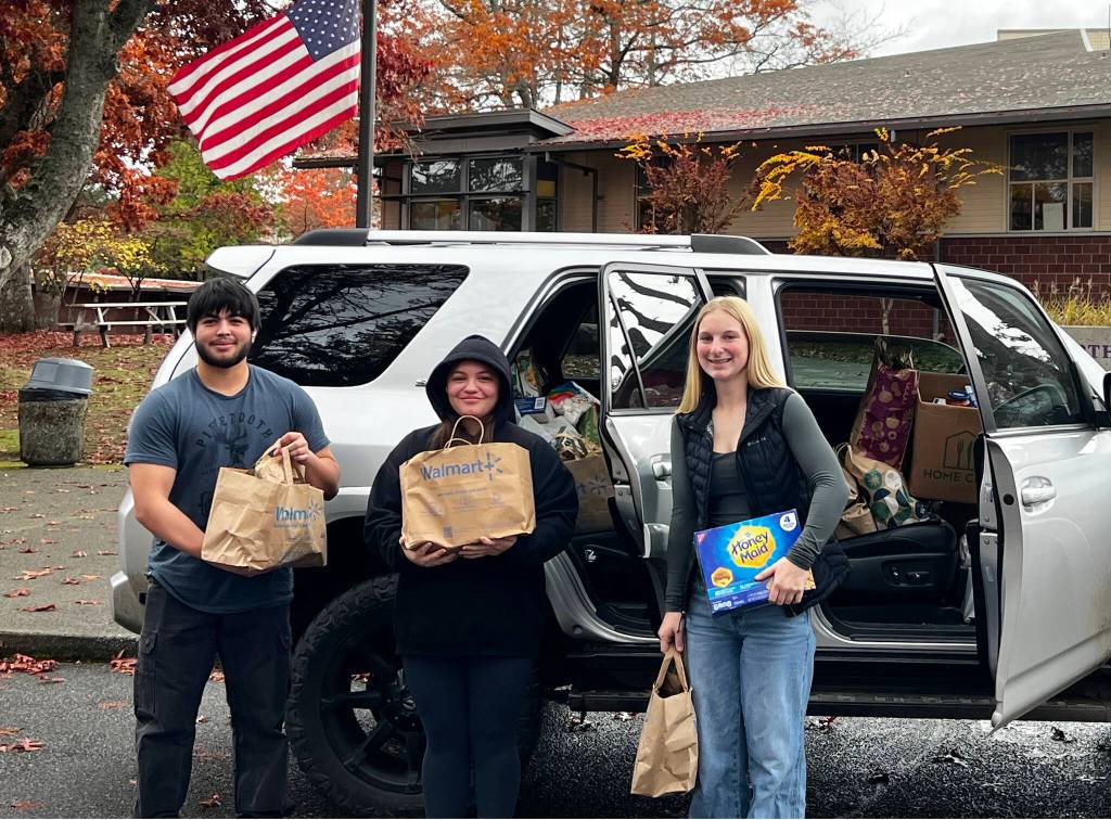 Lisa Johnson and siblings Josue and Emilie May, all students at North Kitsap High School and members of the Native Club, held a donation drive for the PGST food bank to support their community, collecting over 50 pounds of food.