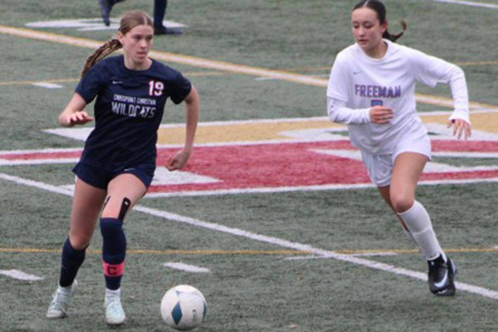 Wildcat Brooke Berens controls the ball in a 1-0 Crosspoint Christian win over the Freeman Scotties in the 1B/2B girls soccer state championship Nov. 22 in Tumwater.