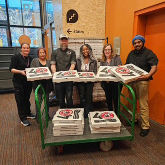 Grant is proud of how long That’s A Some Pizza has been around— 42 years — and aims to give back to the Kitsap community when and how he can. He has participated in the National Pizza Day “Slice Out Hunger” campaign for about five years, he said, but this was the first time he delivered to Mary’s Place. In past years, he has donated pizzas to the Salvation Army in Bremerton for the organization’s meals program, but since nailing down his delivery method, he wanted to branch out, he said.