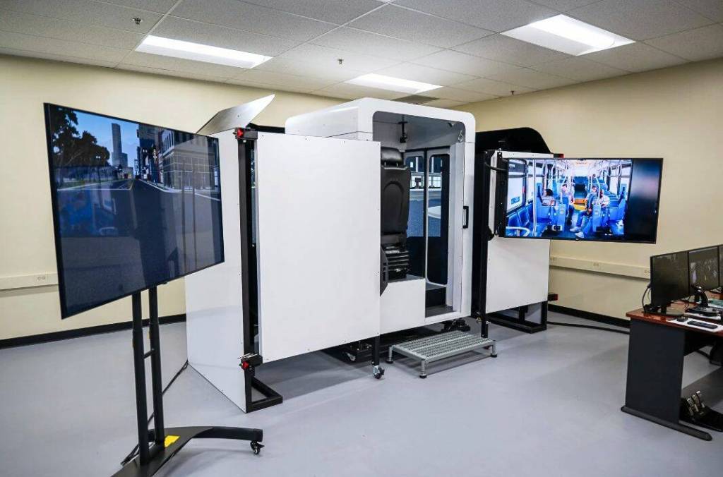 The simulator, which is currently located at KT’s Gateway Center in Bremerton, uses actual footage and maps of the bus routes alongside various passenger capacities and weather and road conditions to train operators. Two driving courses will also be located at the new site for hands-on learning.