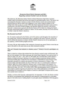 A letter from Bremerton School District explaining why it decided to put BHS Assistant Coach Joe Kennedy on paid leave.