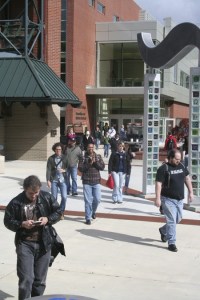 Olympic College students and staff whooped and hollered at the Bremer Student Center Wednesday afternoon, carrying signs that…