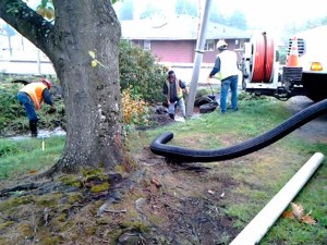 Poulsbo Public Works used a big hose to suck up debris that had collected over the year near…