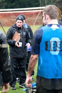 First-year Kitsap Pumas coach Peter Fewing gives instruction during the club’s open tryouts last weekend at Gordon Fields.