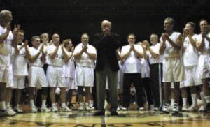 Legendary East High basketball coach Les Eathorne, 85, was honored during halftime of the Bremerton Student & Alumni…