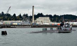 The Los Angeles-class fast-attack submarine USS Albuquerque (SSN 706) arrived at the Puget Sound Naval Shipyard and Intermediate…