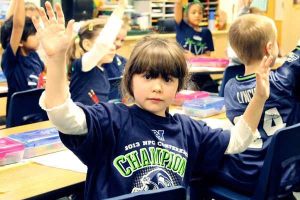 Seattle Seahawks gear was being worn by staff and students, during a special, themed free dress day.