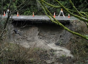 Heavy rain eroded the slope under one lane of Indianola Road near Evergreen Avenue Jan. 11. Kitsap County…