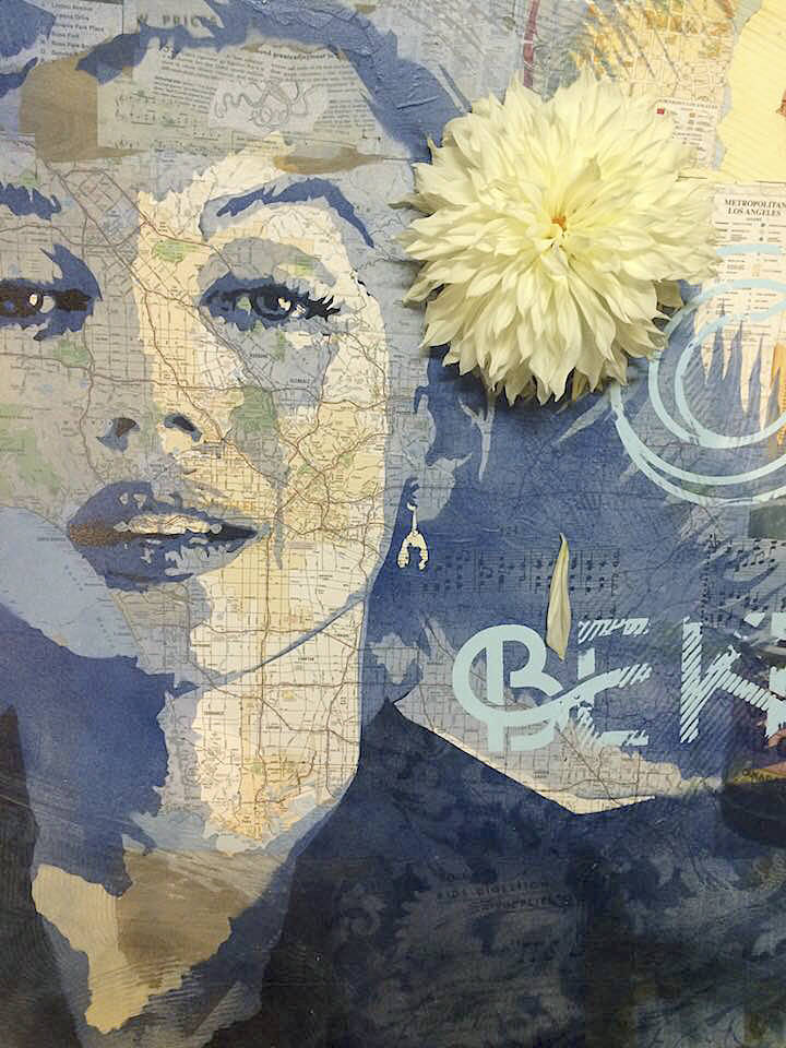 “I take things that mean something, like old maps, old photos — archive-type stuff,” he said. “And I make a collage with it. Then I paint over that.”