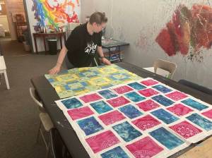 Heather Nolm displays some of the quilt patterns.