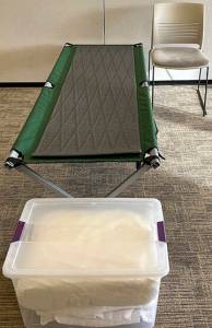 A cot set up at the shelter in Kingston.