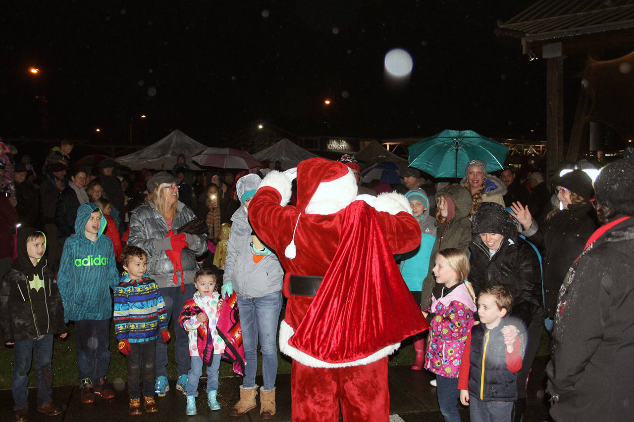 With night having nearly fallen, Mike Wallace Park became packed with visitors waiting to see the waterfront erupt into a jubilee of sparkling, holiday spirit. Kids and grown-ups danced by the stage in the rain as a fire truck made its way toward the park, lights flashing. Inside the truck sat the big man himself, Santa Claus, on his way to turn the lights on at the park and kick off the Christmas season.
