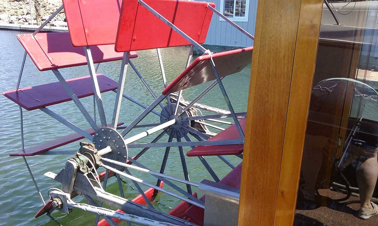 POULSBO — With 3.5-inch engines, 80 square feet of tubing and one large paddle wheel, Allan D. Dunlap’s paddle boat touched the Liberty Bay water on June 23 for an annual boating event.