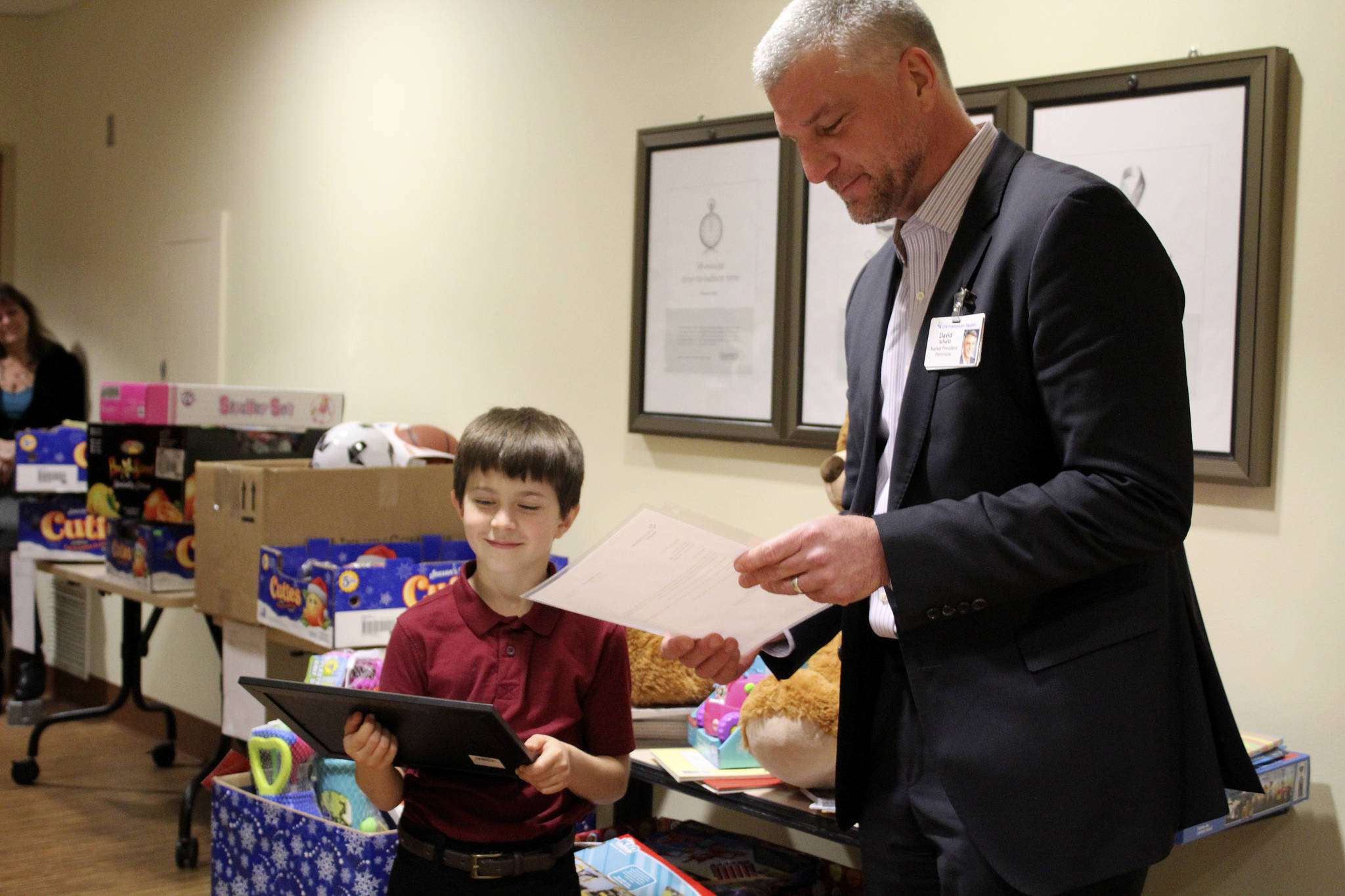 “Your dedication and tireless effort to collect over 1,500 toys is a wonderful testament to the kindness and compassion in your heart,” Schultz read from the letter. “You are an amazing young man … and truly a gift to our community. [We give you] our heartfelt thanks for your generosity, which will brighten the days ahead of our young patients and their families. We wish you a very merry Christmas and a happy new year.”