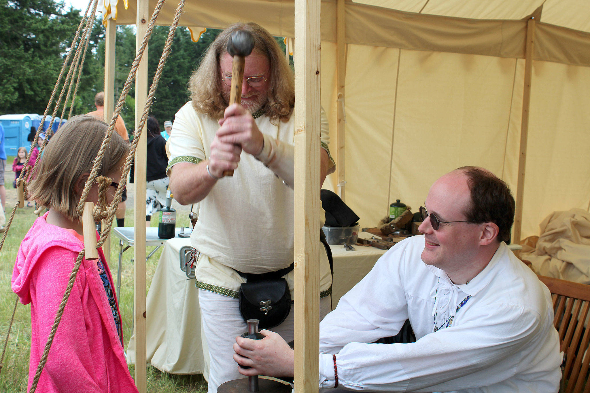 Two SCA members demonstrate how to make coins at the Kitsap Medieval Faire June 3.                                Michelle Beahm / Kitsap News Group