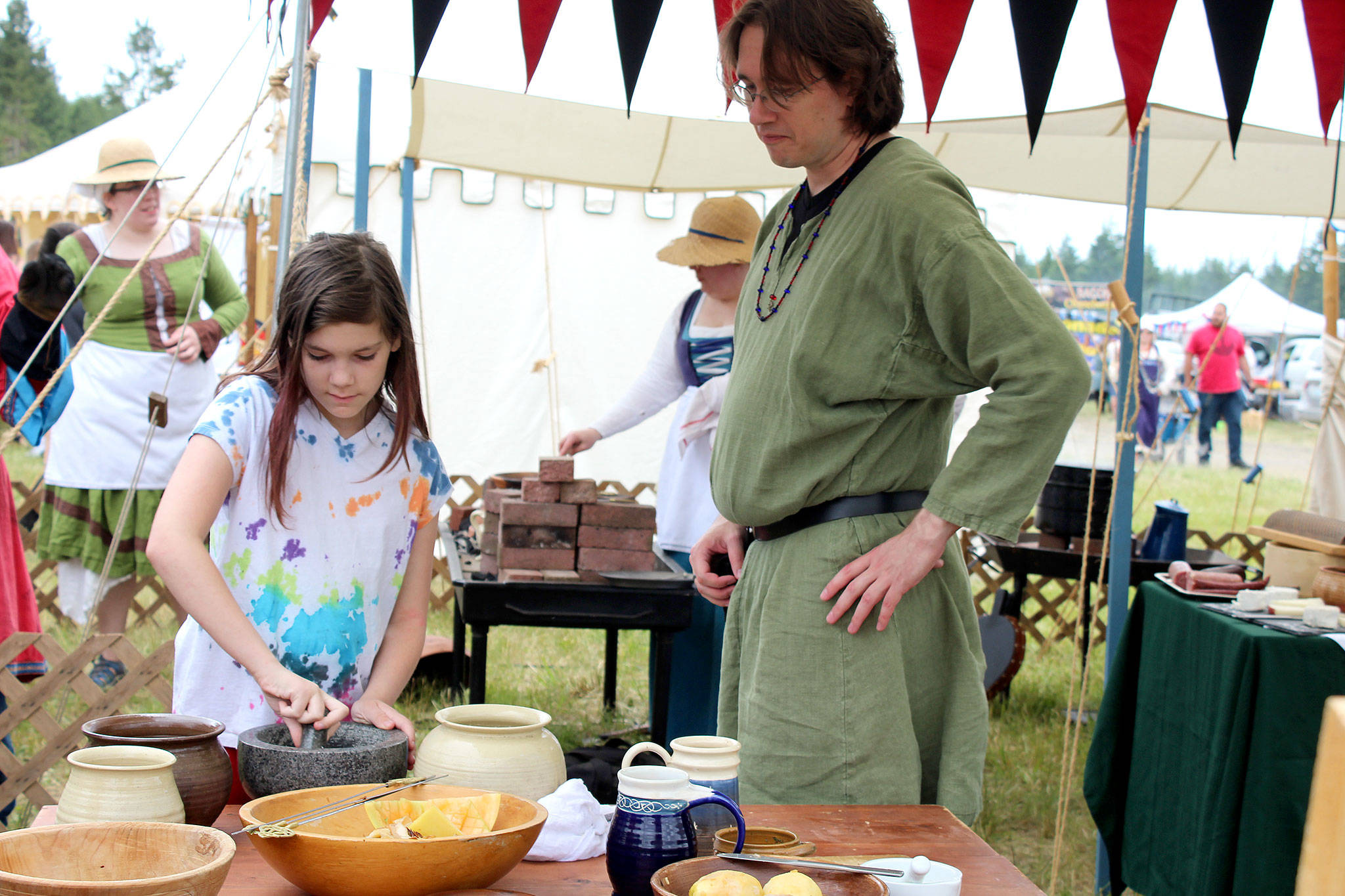 An SCA member demonstrates pottery making using period- appropriate techniques. Michelle Beahm / Kitsap News Group