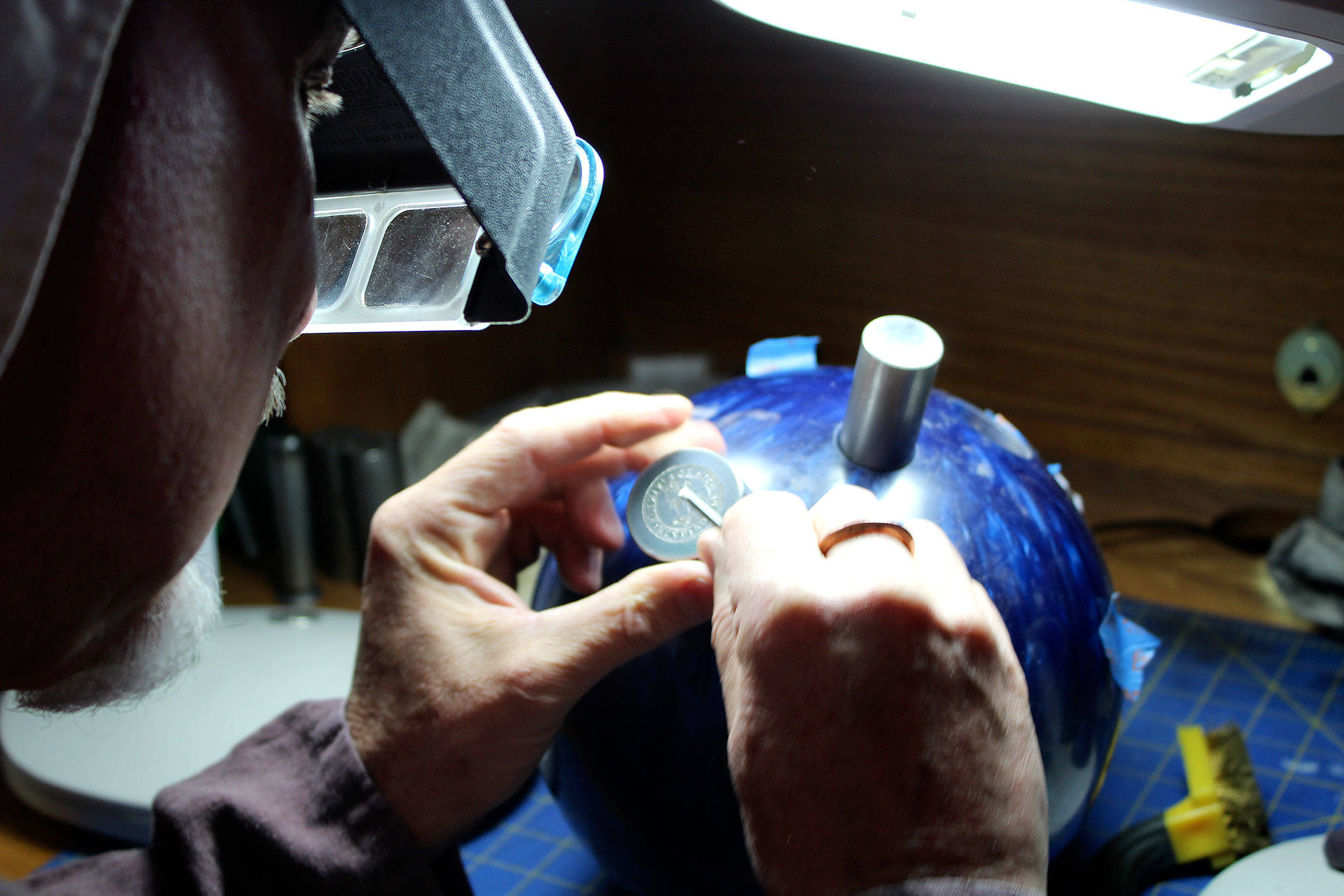“I enjoy the art,” he said. “I enjoy the whole process. And I like striking coins with a six-pound hammer because it’s good exercise.”
