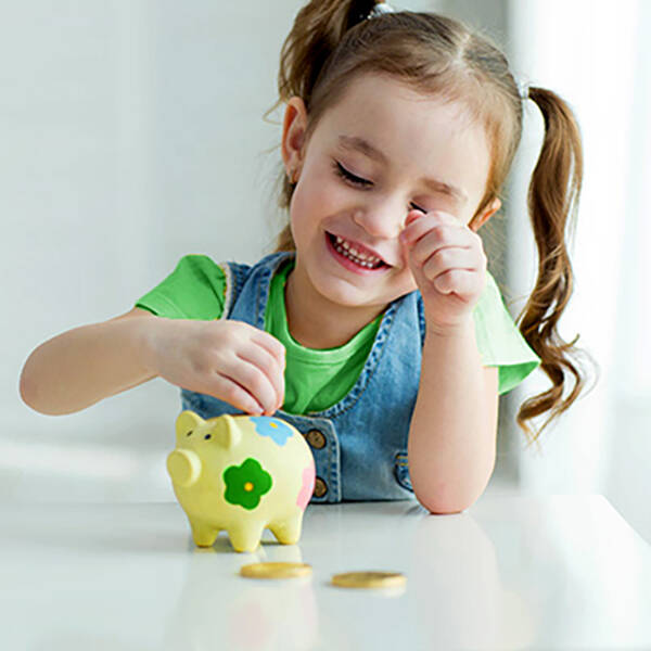 Paying a child for chores is a way to get them excited about earning and saving money. Deposit their earnings in a “piggy bank” or clear jar so they can see the progress as they add coins. When their piggy bank is full, they can deposit their savings into their bank account.