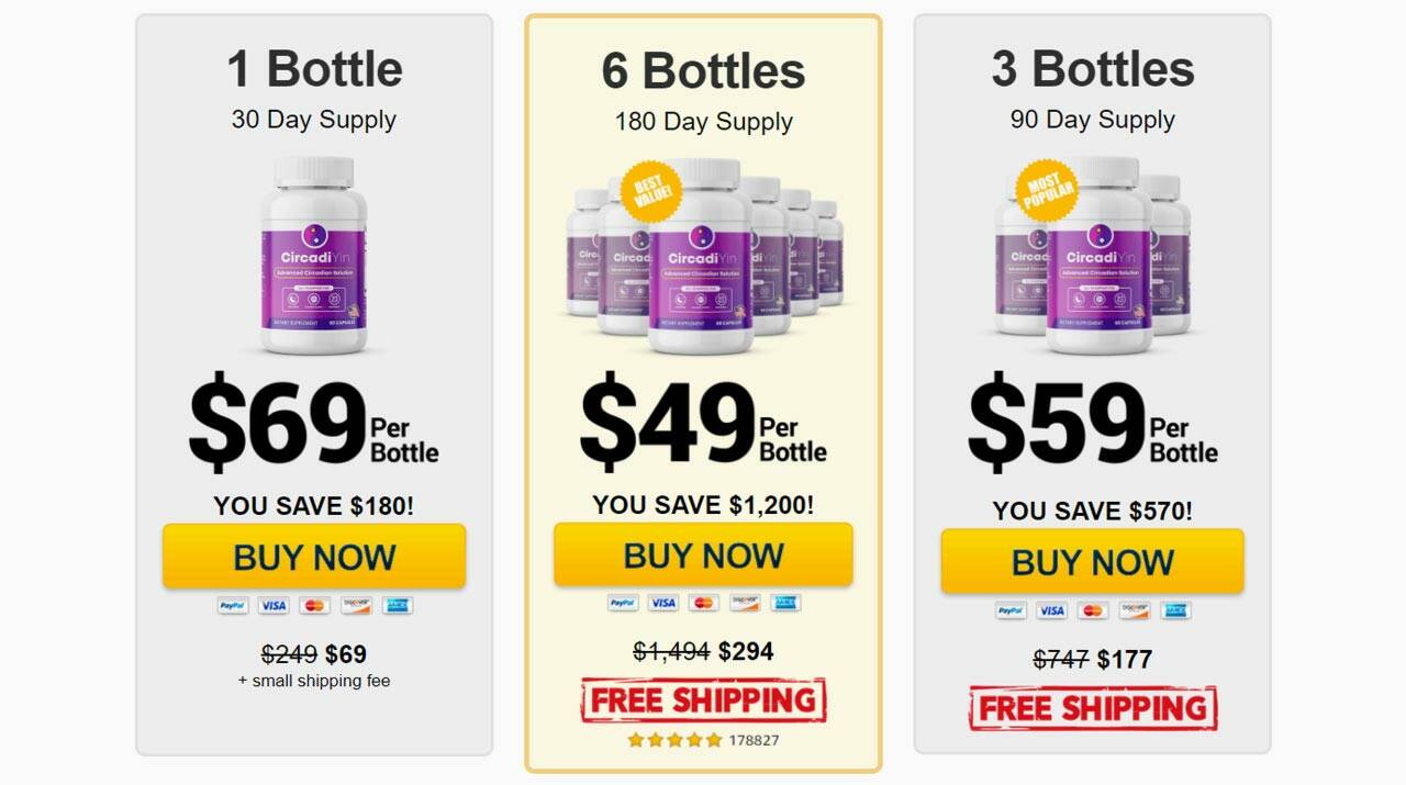 You can buy a bottle of CircadiYin for $69 only for a limited time instead of the normal $254 plus a small shipping fee. Take advantage of the offer and get yourself a three-pack at $59 each or a six-pack at $49 each exclusive of shipping fees. This amazing offer is only available while stocks last, so you should hurry and get yours now. CircadiYin can only be bought on their official website, and you will not find it anywhere else.