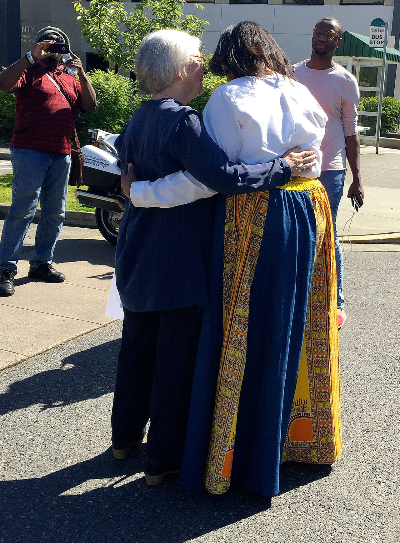 Harry Gilger, chair of the Kitsap County Veterans Advisory Board, and Charlotte Garrido, chair of the Kitsap Board of County Commissioners, welcomed the gathering on a sunny, warm morning on county grounds. Mae Sharpe, minister of music for Emmanuel Apostolic Church, sang moving renditions of “The Star-Spangled Banner,” “Hallelujah” and “Amazing Grace” before the motorcade began its slow journey to Tahoma National Cemetary.