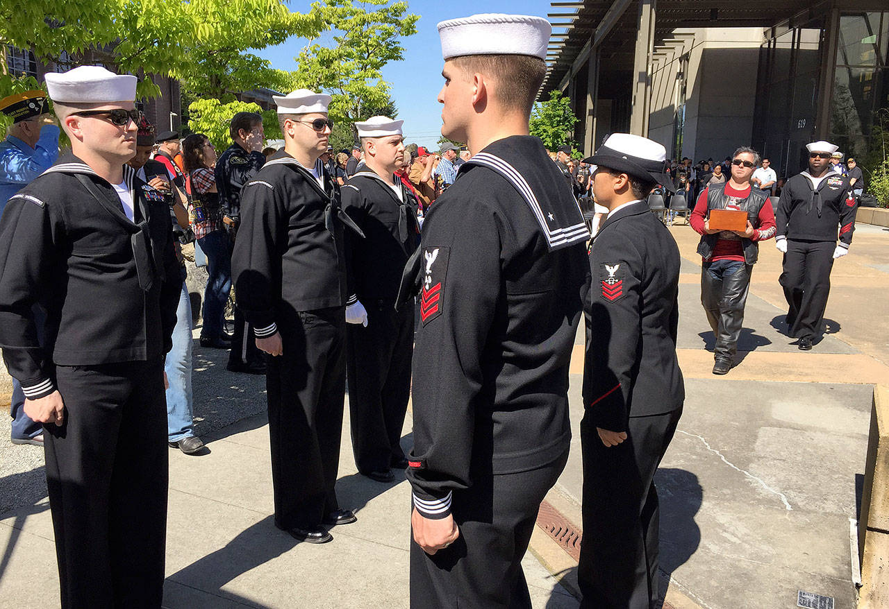 A collection of veterans and service men and women came together May 27 in front of the Kitsap County Administration Building in Port Orchard for the eighth celebration of life ceremony, The Unforgotten Run to Tahoma. Many of those at the somber event had arrived via motorcycle and, after the ceremony, lined up by the dozens to escort the service members’ remains to Tahoma National Cemetary in Covington.