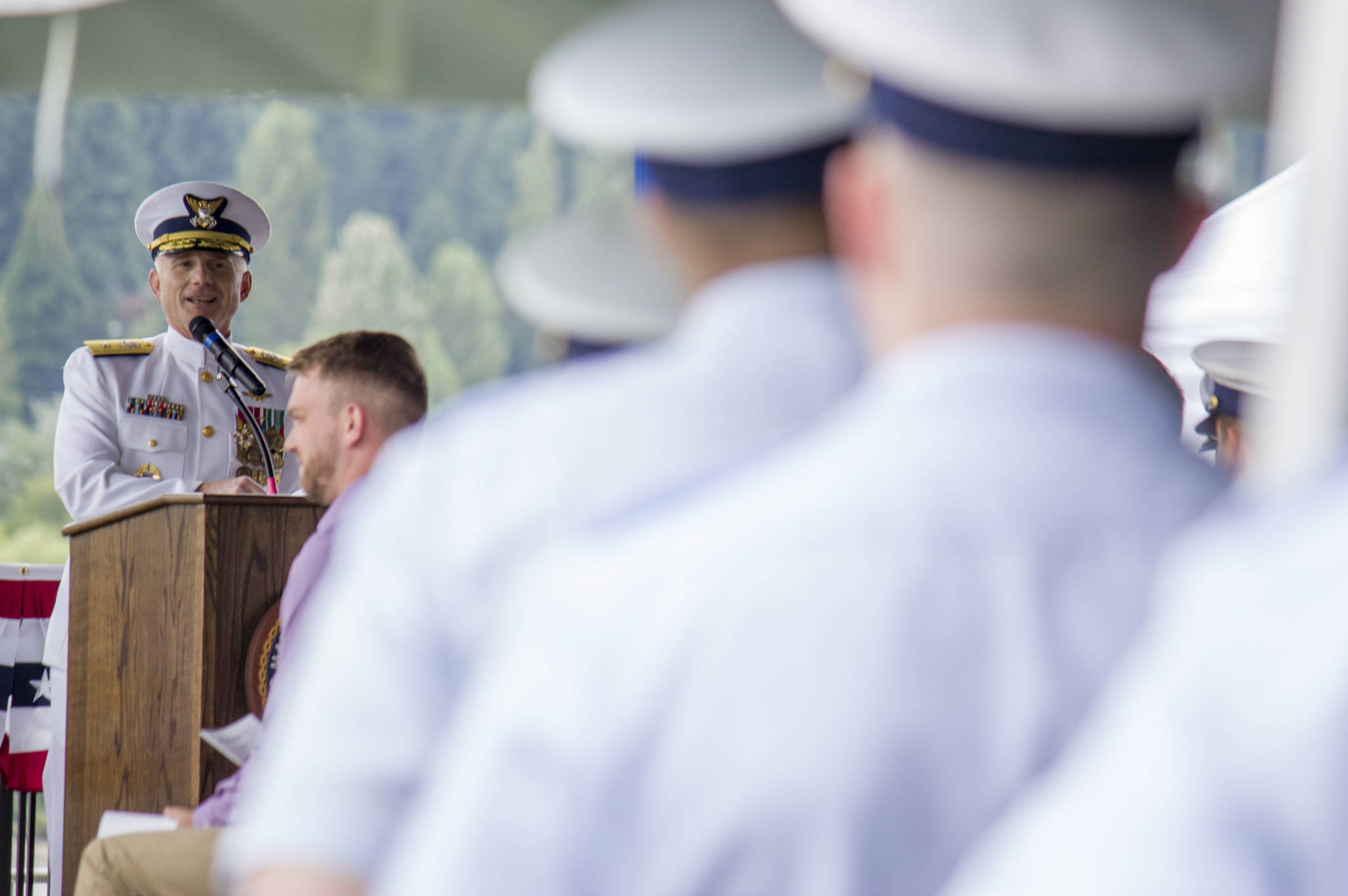 “Admiral, U.S Coast Guard, departing,” said the speaker. Rear Adm. Throop left the stage.