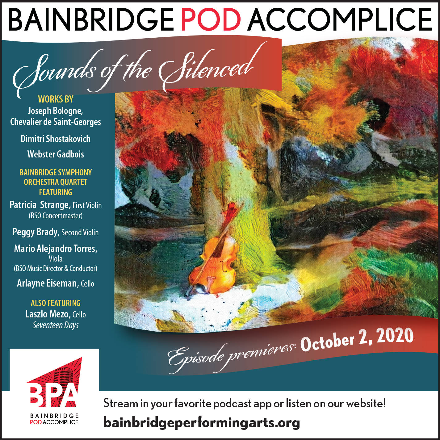 •Oct. 2 – Sounds of the Silenced, uplifts and weaves together voices that have been oppressed – whether by circumstance of history, internal sentiment or tragedy. Features works of Bainbridge Island composer and improviser Webster Gadbois.