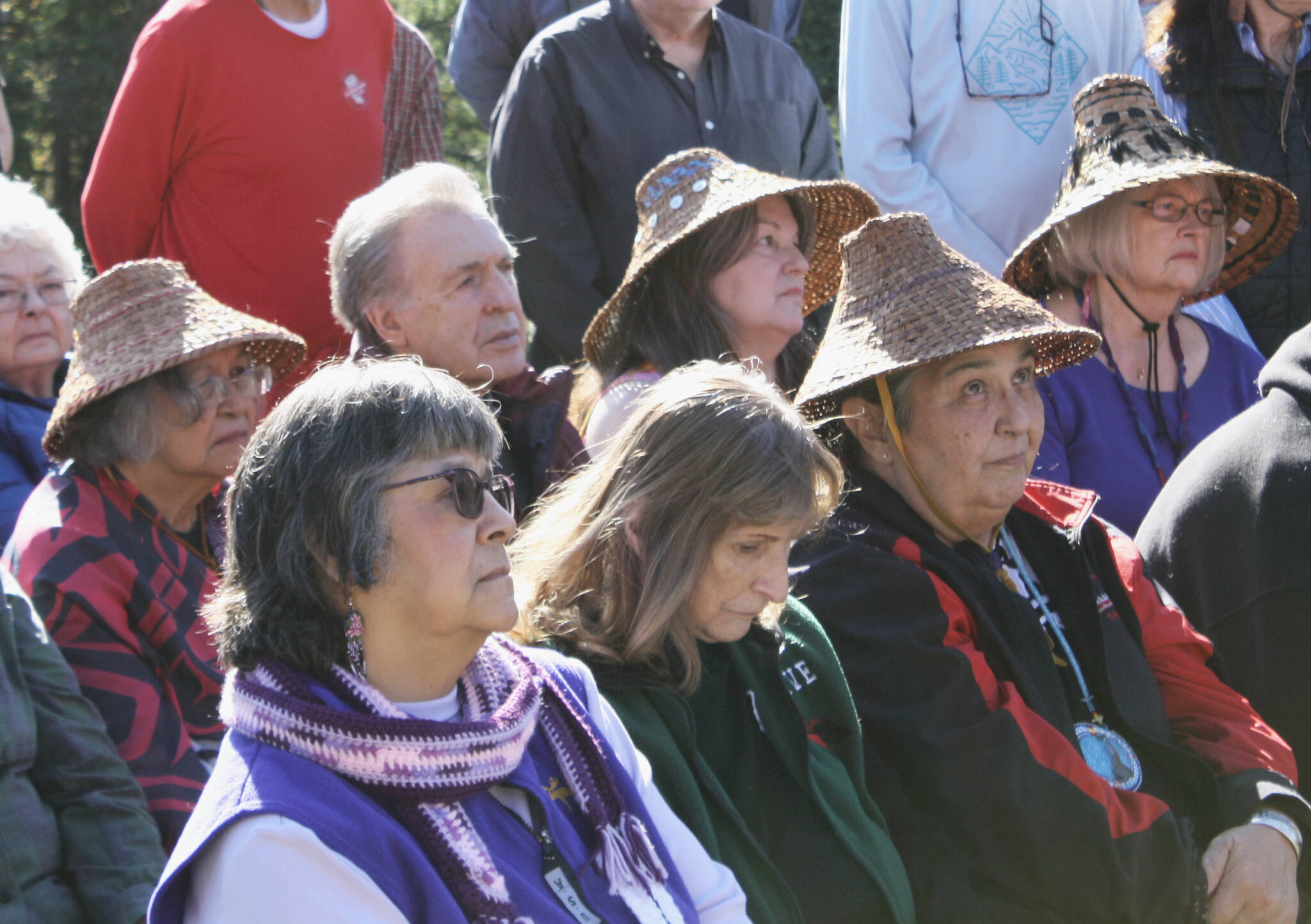 Purser discussed her creative process at the ceremony. Shweabe’s garments, especially the rope around his waist and woven cedar hat, feature intricate details that have never before been depicted in a Suquamish pole.
