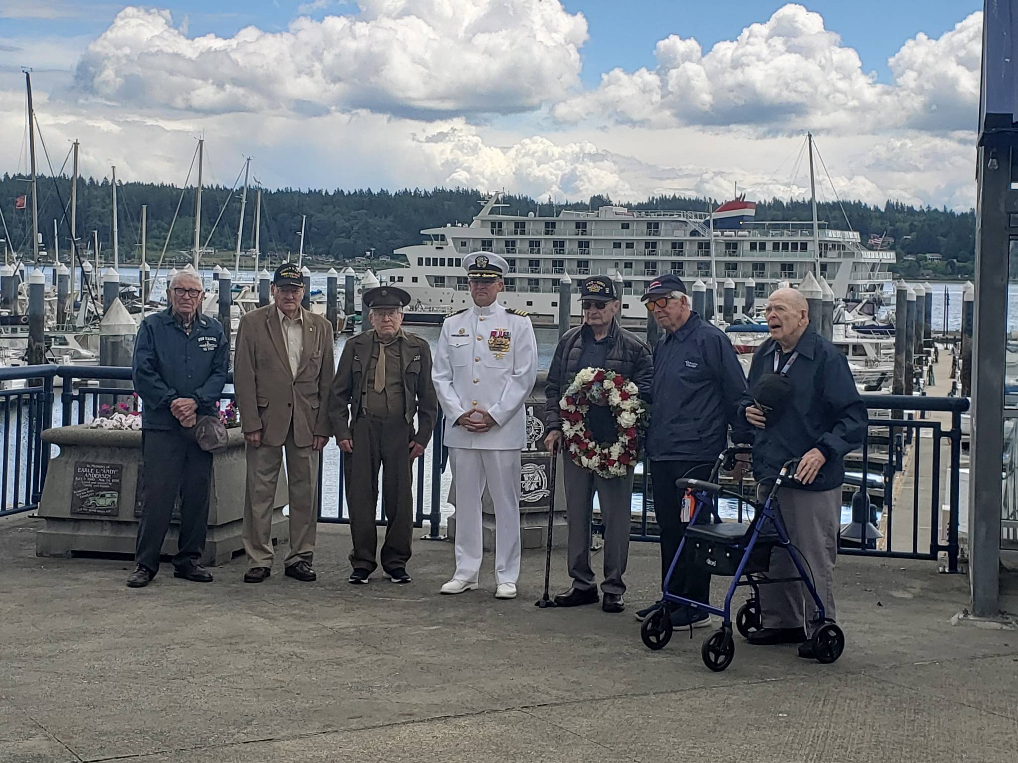 Capt. Matthew Paradise, USS Carl Vinson Commanding Officer, was the keynote speaker during the event, which was followed by a wreath laying ceremony. Navy Band Northwest provided music and the Vikings of Electronic Attack Squadron One Two Nine, out of Naval Air Station Whidbey Island, delivered an EA-18G Growler flyover. World War II veterans were also in attendance at the event.