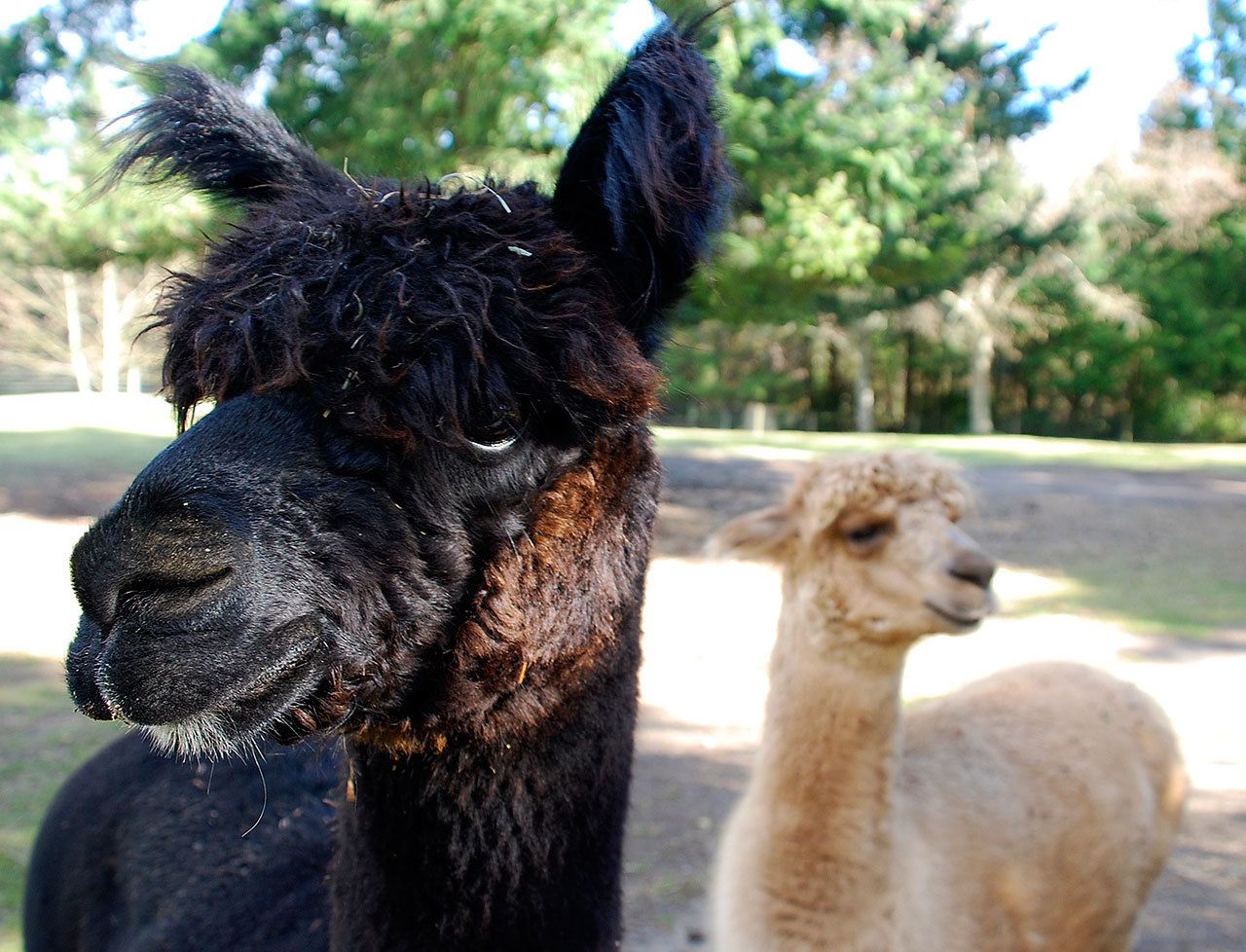 Life for alpacas gets “curiouser and curiouser” for Apollo (above left) and Outlaw when a visitor shows up. Photo credit: Bob Smith | Kitsap Daily News