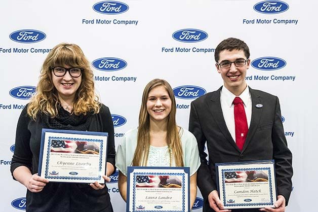 A $5,000 Blue Oval Scholarship was awarded to Camdon Hatch, Central Kitsap High School, the first-place winner. Second place winner was Laura Landro of Klahowya Secondary School who received a $2,500 scholarship. The remaining 40 winners each earned scholarships of $1,000. The scholarship will be paid directly to the college or university in which the winner intends to enroll.